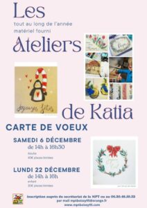 ateliers de katia decemebre Publié le 7 novembre 2025 par Maison Pour Tous par Maison Pour Tous Navigation de l’article 6 et 22 Décembre: Les ateliers de Katia