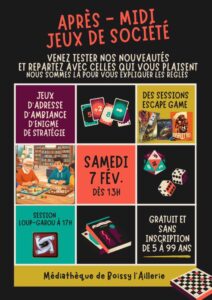 Recommandé par la MPT: 7 Février, jeux de société à la Mediathèque